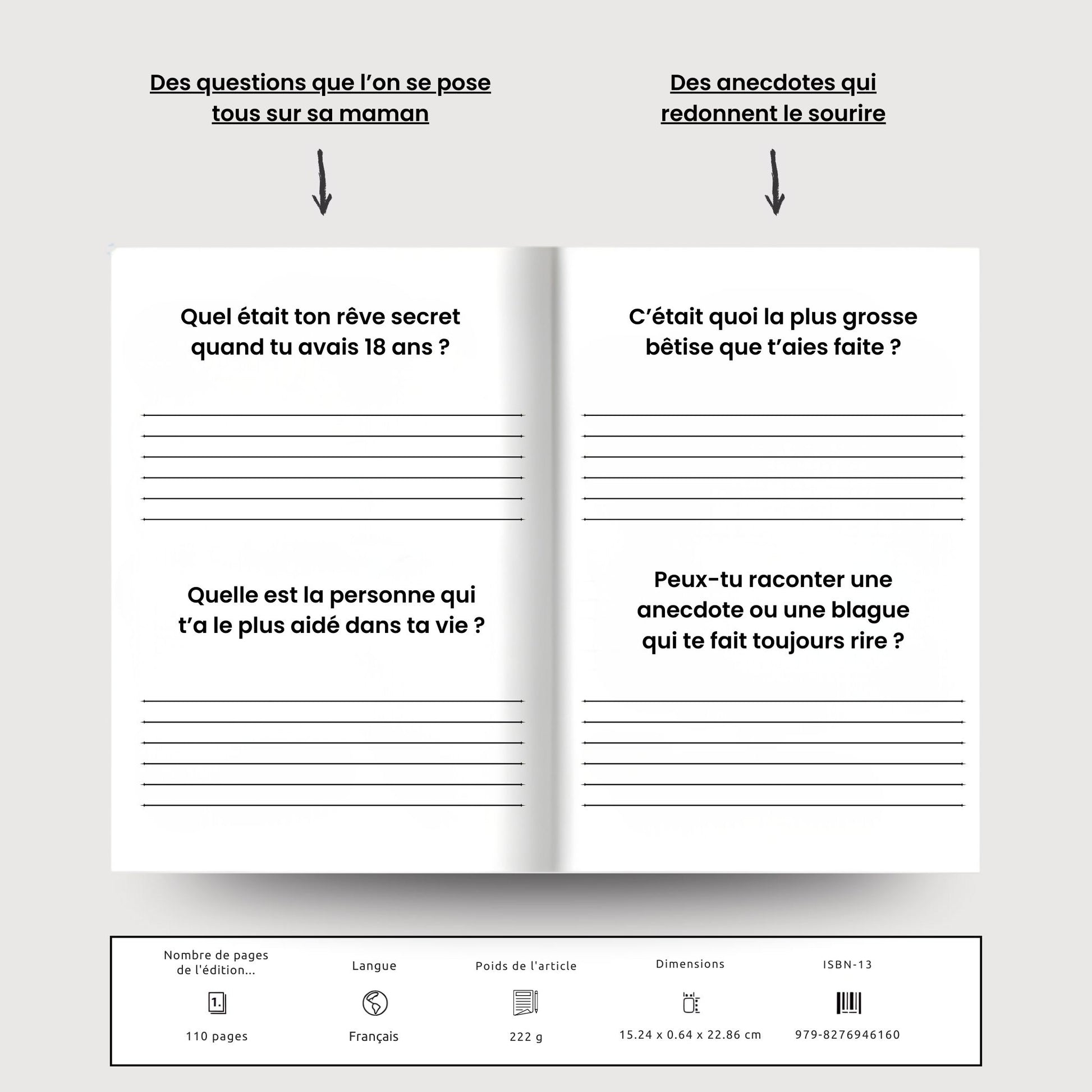 Les questions sont pensées pour être simples, directes et accessibles. Même quelques phrases par question suffisent pour créer un souvenir éternel. Beaucoup de mamans surprises par ce cadeau finissent d’ailleurs par y prendre goût.